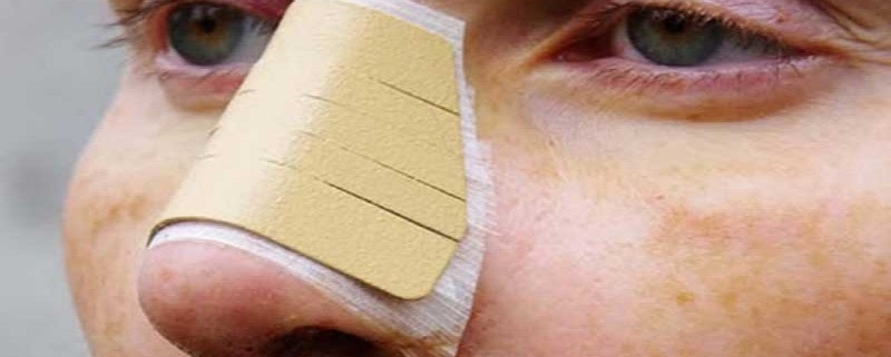 بعد از اینکه اسپلینت بینی برداشته می شود بینی متورم است و برای کاهش تورم بینی چسب زده می شود. فشاری که چسب روی بینی ایجاد می کند تورم ناشی از تجمع مایعات در بافت های بینی را کاهش می دهد. مزیت دیگر این است که تحت فشار بودن بینی توسط چسب باعث ترمیم و بازسازی بافت ها با تحریک کلاژن سازی در اطراف نواحی بخیه ها خواهد شد.
